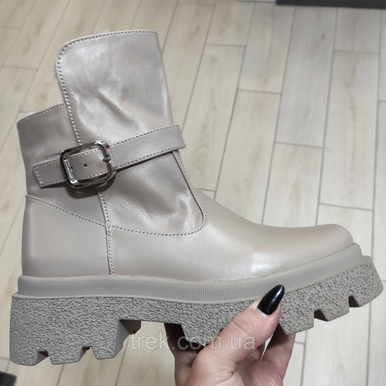 Черевики зимові жіночі шкіряні бежеві /22704/ 37рВ наявності